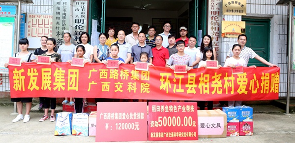去年,新發(fā)展集團總部和直屬各企業(yè)員工踴躍捐款,籌集愛心款項33萬元。其中,明倫鎮(zhèn)相堯村建設“農(nóng)村書屋”,設立“愛心助學基金會”幫助百余名貧困山區(qū)學子讀書圓夢,以實際行動援助扶貧村,力爭現(xiàn)實“扶貧先扶智”的目標。轉眼已是2017年,美麗的象牙塔令人憧憬,但仍有許多優(yōu)秀學子正在為入學費用發(fā)愁,甚至因為家庭困難而錯失升學機會,為將愛心延續(xù),扶貧后援單位廣西路橋集團積極發(fā)動廣大員工繼續(xù)為相堯村貧困學子募集愛心捐款,共籌集到捐款共計12萬元,成為“愛心助學基金會”第二筆愛心基金。今年,基金會將資助相堯村120余名貧困學子每人1000元左右,幫助其順利完成學業(yè)。為資助該村稻田養(yǎng)魚扶持項目,廣西交通科學研究院有限公司捐贈5萬元,并成立特色產(chǎn)業(yè)發(fā)展基金。