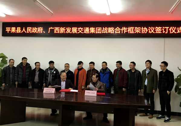 12月13日,集團公司與平果縣人民政府簽訂戰(zhàn)略合作框架協(xié)議,謀劃推動更多與平果縣相關的項目納入自治區(qū)和國家層面重大項目盤子,推動平果縣基礎設施建設,進一步提升平果縣經(jīng)濟社會發(fā)展水平。