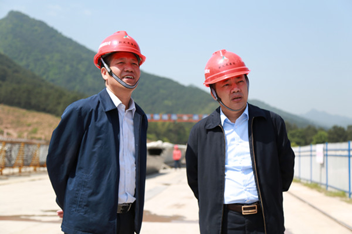 圖五:集團公司黨委書記、董事長朱堅和(左)與賀州市副市長陳翼明(右)在施工現場調研